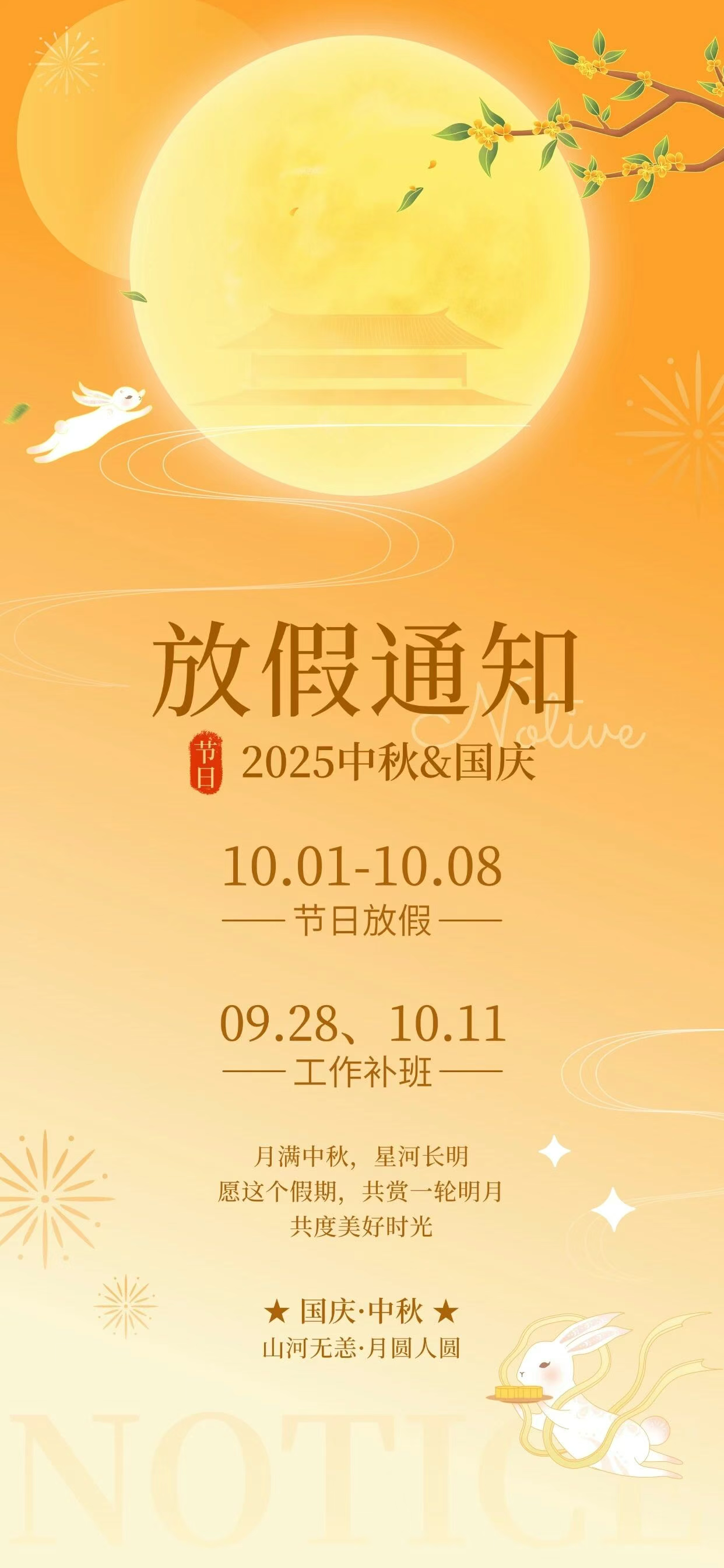 京都玉崎 | 2025年中秋節(jié)、國(guó)慶節(jié)放假通知安排
